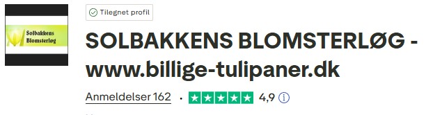 Du kan give os en anmeldelse på Trustpilot via linket her: Anmeldelser af SOLBAKKENS BLOMSTERLØG - www.billige-tulipaner.dk | Læs kundernes anmeldelser af billige-tulipaner.dk